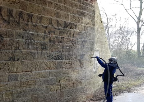 Sandstrahltechnik nutzen wir für die Fassadenreinigung, Denkmalschutz, Graffitientfernung, Brandsanierung, Fachwerkreinigung, Holzfassade, Rostentfernung und viele weitere Möglichkeiten. Unsere Spezialität - die Treppensanierung....